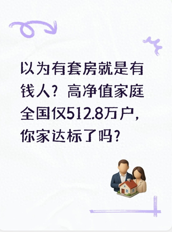 你以前是不是也觉得有一套房子就算富裕家庭?看完全国仅512.8万户高净值家庭的数据,你对家庭财富有没有新的看法?你觉得一家人安稳重要还是资产数字重要?欢迎在评论区一起交流。